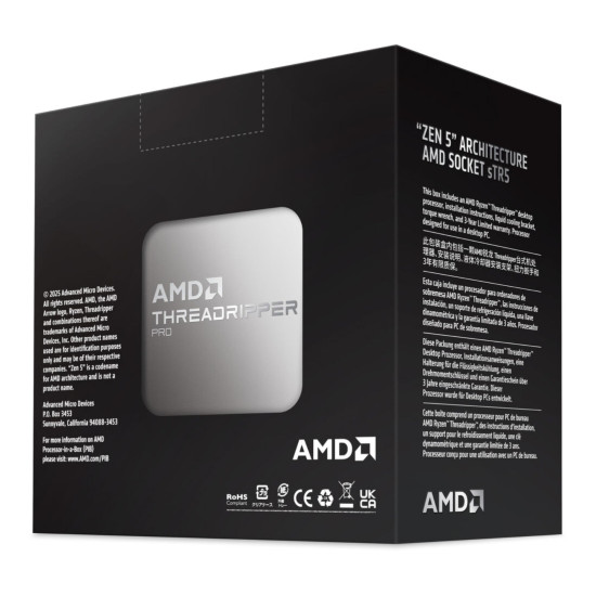 Built for sTR5 socket motherboards and WRX90 chipsets, this processor runs at 350W TDP and does not include a cooler, giving builders full flexibility for advanced cooling solutions.