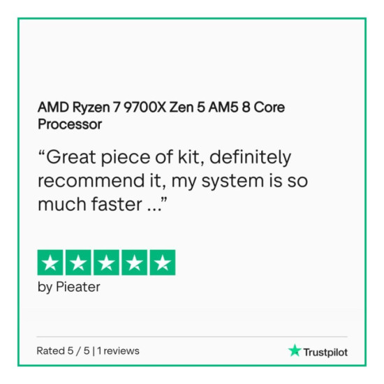The AMD Ryzen 7 9700X is an 8-core processor with 16 threads, capable of boosting up to 5.5 GHz. Built on AMD's advanced Zen 5 architecture, it delivers exceptional performance while maintaining a power-efficient 65W TDP. Speed, efficiency, and core count make it an ideal choice for gamers, content creators, and demanding multitasking workloads.