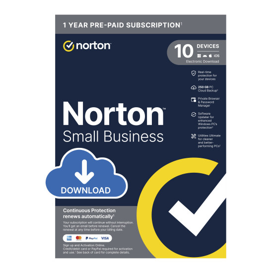 Norton Small Business 2.0 - 250GB, 1 User, 10 Devices, 1-Year Enrollment Digital Key
