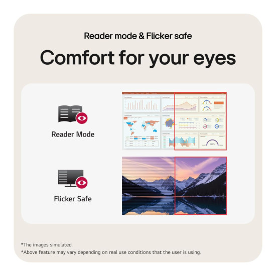 Reader Mode adjusts color temperature and luminance, supporting