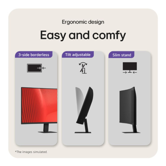 This LG 27-inch monitor is built with ultra-slim bezels, ergonomic tilt adjustment, and a sleek curved profile. Its minimalist design complements modern workspaces, while providing comfort and flexibility, making it easy to adapt your setup for optimal focus, posture, and visual appeal.