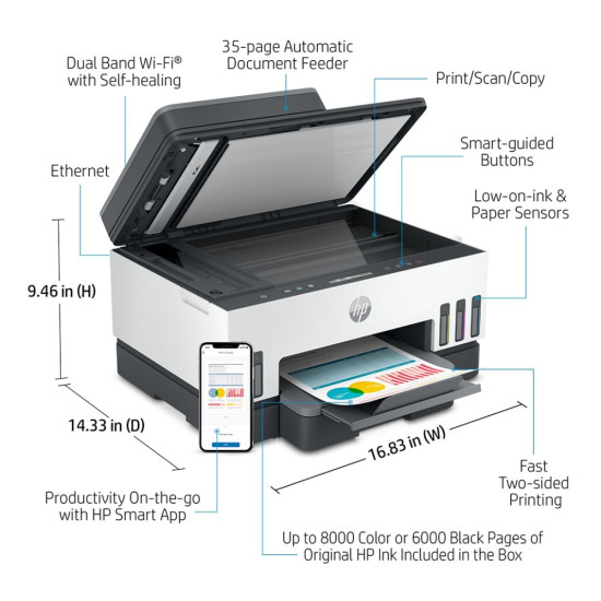 HP Smart Tank 7305e Scan to PDF Two-sided printing All-in-One Wireless Printer