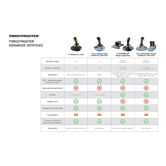 16 action buttons and a multi-directional hat switch provide easy access to vital controls.