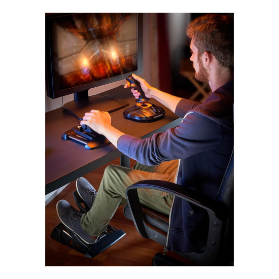 Thanks to the very long range of travel on the rudder axis, the result is an extremely precise steering control mechanism for perfectly-proportioned maneuvers. The length of the range of travel, combined with the smoothness of Thrustmasters proprietary S.M.A.R.T technology, allows pilots to activate the rudder with just the right amount of intensity and jolt-free sliding action for maneuvers that are completely precise.