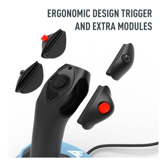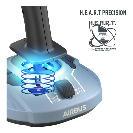Take advantage of accurate and realistic control with the TCA Sidestick Airbus Edition from Thrustmaster. Featuring an ambidextrous design and four swappable button modules, this joystick can be used to mirror four different setups, including airliner right or left seat, small aircraft narrow, or large center stick setups. Alongside an integrated throttle axis, the stick also incorporates a reverse function. 17 action buttons are also present, facilitating physical or touch-based identification so you don't press the wrong button. Twelve of the buttons are located at the base of the controller, four are on the stick, and one virtual button sits on the throttle. An eight-way point-of-view hat switch also provides accuracy. Plug-and-play with compatible Microsoft flight sims, the TCA Sidestick Airbus Edition works with Windows 8 or later. This joystick can also be used with Thrustmaster T.Flight rudder pedals or the Thrustmaster pendular rudder.