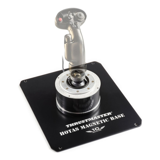 The Thrustmaster HOTAS Magnetic Base is compatible with the optional HOTAS Cougar, HOTAS Warthog, F-16C Viper, and F/A-18C Hornet add-on grips.