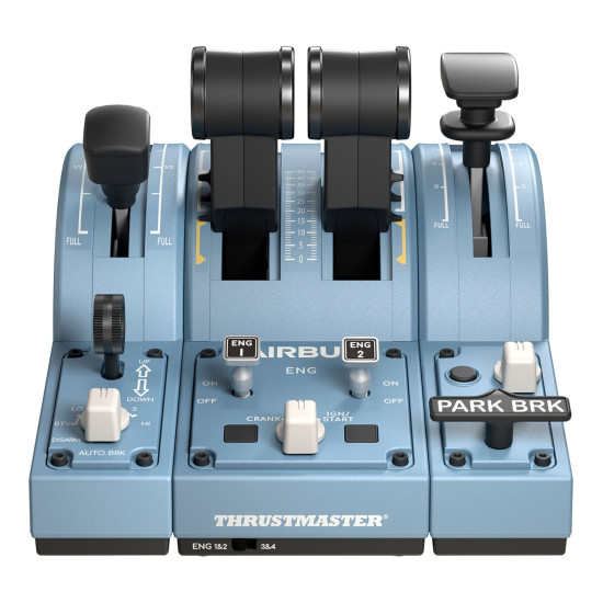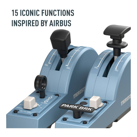 Expand your flying capabilities with the Thrustmaster TCA Quadrant Add-On Airbus Edition. Sporting the same aesthetic of the original TCA Quadrant, this package provides flying simulator enthusiasts with greater control options. You get 15 additional functions, giving you control over the flaps, landing gear, speedbrake, rudder trim, and more. Ergonomic levers are equipped with Thrustmaster's proprietary magnetic H.E.A.R.T. system, providing flying enthusiasts a realistic and accurate experience with 16-bit resolution.