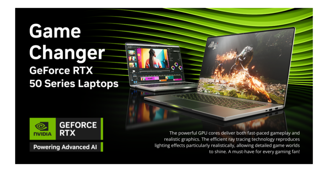 Fuelled by NVIDIA Blackwell, GeForce RTX™ 50 Series Laptop GPUs redefine gaming and content creation. Packed with cutting-edge AI power, they unlock next-gen experiences and unparalleled graphics quality. Supercharge performance with NVIDIA DLSS 4, create stunning visuals in record time and push your creative limits with NVIDIA Studio. All within the sleekest, most power-efficient RTX laptops, fine-tuned by Max-Q technology.