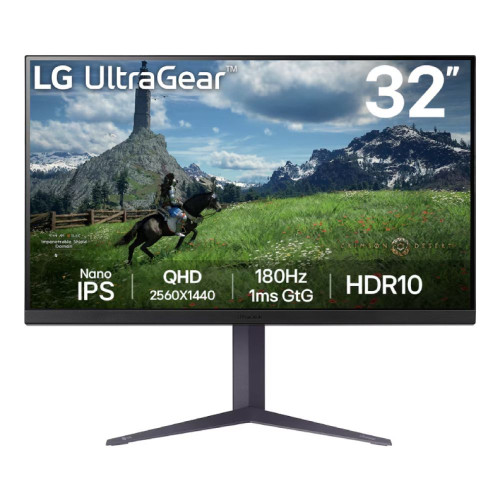 The LG UltraGear™ 32GS85Q-B.AEK is a gamers dream, offering a powerful combination of speed, precision, and vibrant visuals. Its QHD Nano IPS display with 98% DCI-P3 coverage delivers immersive graphics, while the 180Hz refresh rate ensures seamless gameplay.