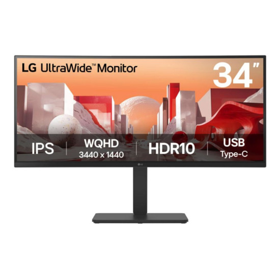 LG 34BA75QE-B 34" UltraWide WQHD IPS Curved Height Adjustable Built-in Speakers USB-C Monitor Black - Perfect for Work and Entertainment Endeavours!