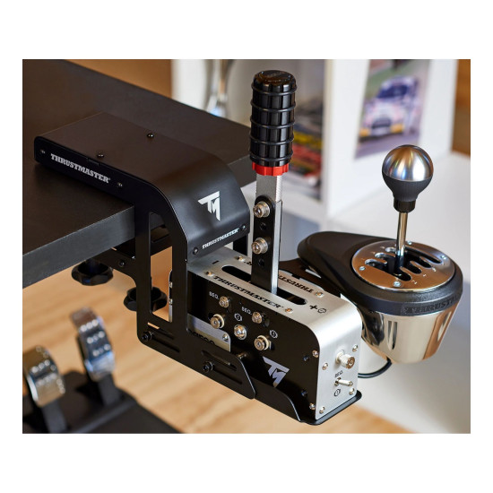The Thrustmaster TM Racing Clamp is a solid table clamp for mounting their TSS handbrake and TH8A shifter directly onto a table/desk without the need for a cockpit.