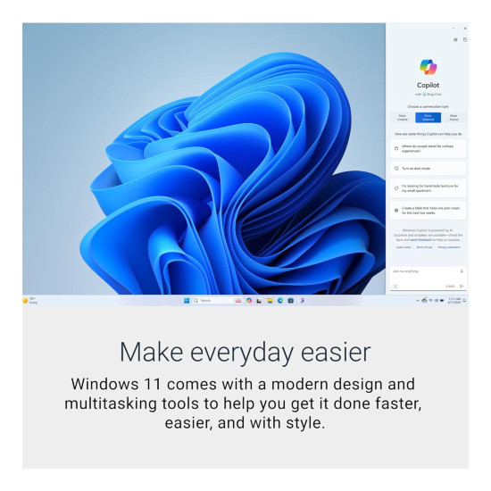 Windows 11's clean new design makes it easier to search and find, and new smart features help you get things done fast, fun, and easily.