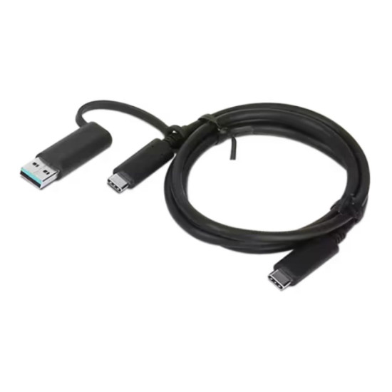 Lenovo Hybrid USB-C with USB-A Cable makes it easy to connect your notebook USB-C ports or USB-A ports with other USB-C accessories. USB-C to USB-C cable supports 10Gbps data rate, 20V/5A 100W power and USB-A adatper supports 10Gbps data rate, 12W, 5V/1.5A 7.5W power. The length is 1m (33).