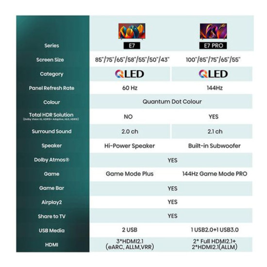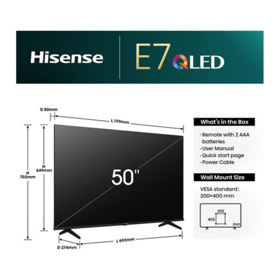 Hisense 50E7NQTUK E7 Series 50" 4K Ultra HD QLED SMART TV