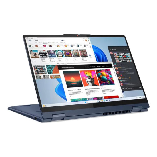 Perfect for any task at hand, the 14-inch IdeaPad 5i 2-in-1 laptop knows no bounds. Its 360° hinge allows for endless possibilities, unrivaled flexibility, and four different use modes. You can knock out a business plan in laptop mode, stream the latest episode in tent mode, present confidently in stand mode, or get creative with sketching on tablet mode. It is built with a sleek metal cover, available in two eye-catching shades: Luna Grey and Cosmic Blue.