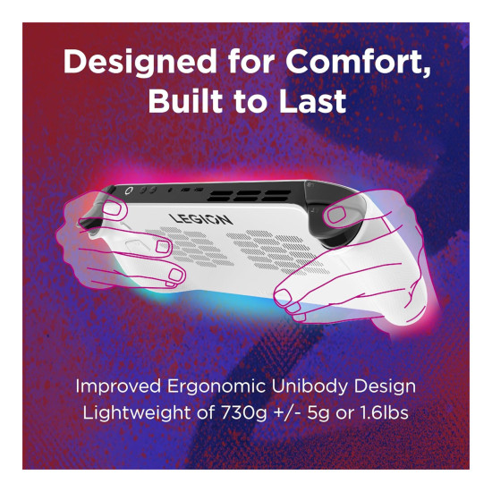 Carry your gaming world effortlessly. At just 730 g and featuring an 8 touchscreen, the Legion Go S is designed for adventures-big or small.