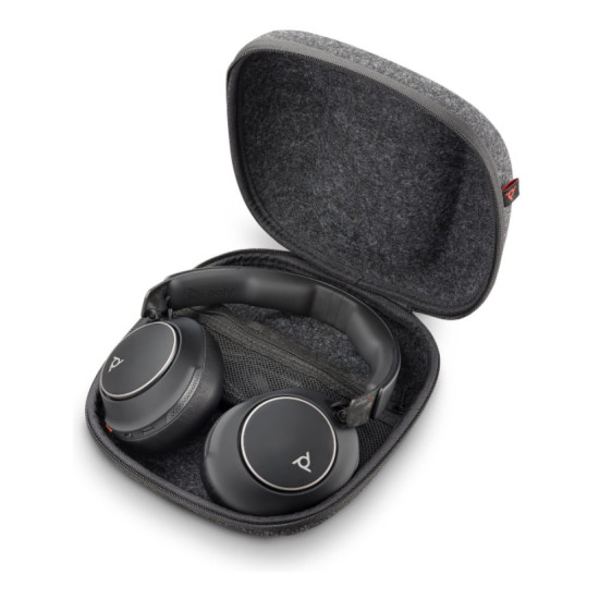Designed for the modern worker with an emphasis on call clarity, the Voyager Surround 80 UC Noise-Canceling Wireless Over-Ear Headset feature a total of 10 built-in microphones. Gone is the old-style boom, as six mics are used to clearly pick up your voice on calls. The other four are dedicated to adaptive active noise cancellation. So, whether you work in the office in an open floor plan, at home with noisy kids and construction, or a hybrid of the two; you can ensure you'll be able to focus and hold professional-quality calls and meetings. The 40mm drivers are also ideal for listening to music as you work. The Voyager Surround 80 can pair to two devices at once, so you can switch seamlessly from streaming music on your phone to a video call on your laptop.