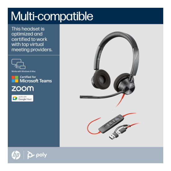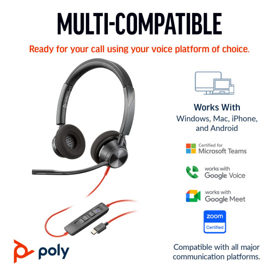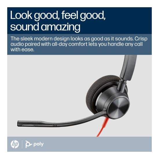 The Blackwire 3300 Series is completely plug-n-play with USB devices, so users can take calls in the office or on the go. Its robust design delivers reliability you can count on. This is the hassle-free headset you've been looking for.Look good, feel good, sound amazing