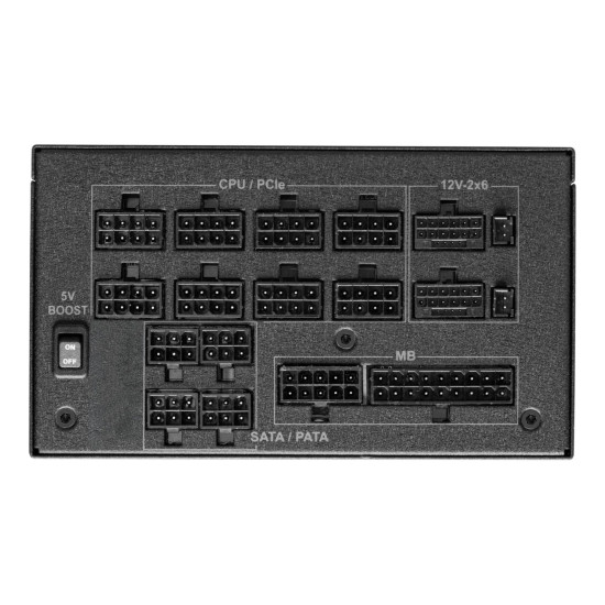 When this switch is enabled, it boosts the +5V voltage by 200mV to maintain optimal performance. If no voltage drop occurs, the PSU will regulate the +5V rail to approximately +5.2V, ensuring consistent power delivery.