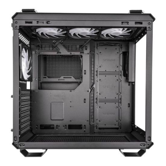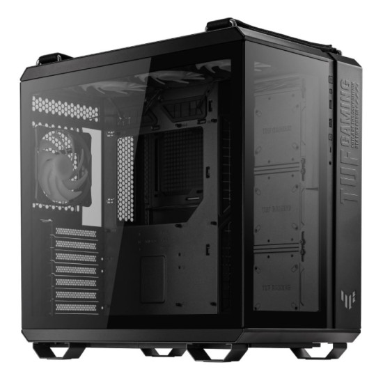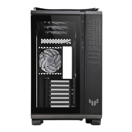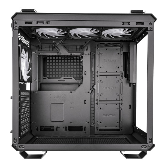 Craft your dream rig with the TUF Gaming GT502 PLUS, a dual-chamber black PC case with impressive cooling, tool-free panels, and panoramic views that showcase your system in style.