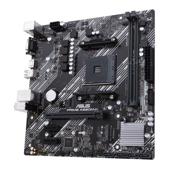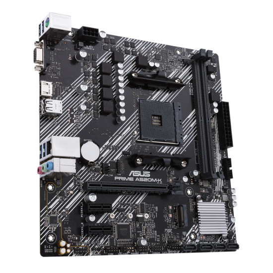 With its sleek micro ATX form factor, the PRIME A520M-K fits easily into most PC cases. It offers extensive connectivity options, including USB 3.2 Gen 1, HDMI, and PCIe 3.0 x16. Its compatibility with a wide range of components makes it an ideal choice for versatile builds.