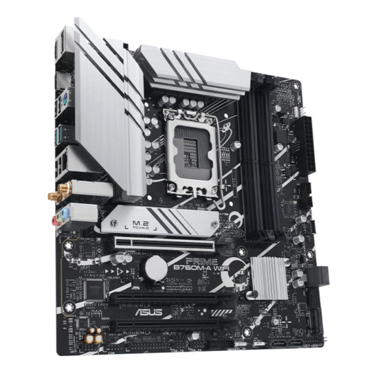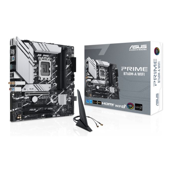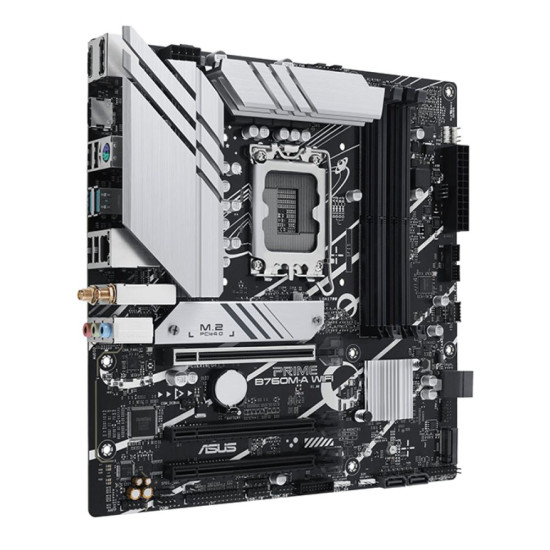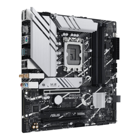 The ASUS Prime B760M-A WiFi motherboard provides a strong foundation for modern computing. It supports 14th, 13th, and 12th Gen Intel® processors and DDR5 memory, delivering fast performance and ultrafast connectivity through PCIe 4.0 and dual M.2 slots. With Wi-Fi 6, Realtek 2.5Gb Ethernet, and intuitive cooling, its perfect for multitasking, gaming, or advanced AI applications.