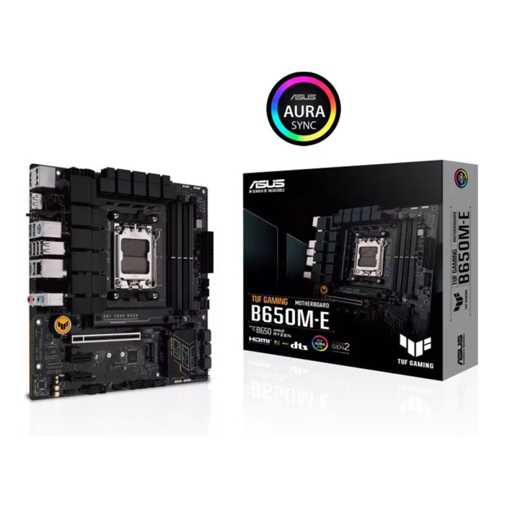 ASUS TUF GAMING B650M-E takes all the essential elements of the latest AMD Ryzen 7000-series processors and combines them with game-ready features and proven durability. Engineered with military-grade components, an upgraded power solution and a comprehensive cooling system, this motherboard goes beyond expectations with rock-solid and stable performance for marathon gaming. TUF GAMING motherboards also undergo rigorous endurance testing to ensure that they can handle conditions where others may fail. Aesthetically, this model incorporates rugged off-black and geometric design elements to reflect the dependability and stability that defines the TUF GAMING series.