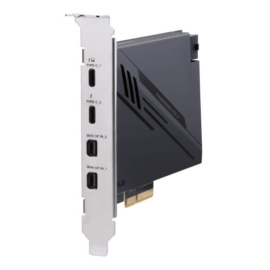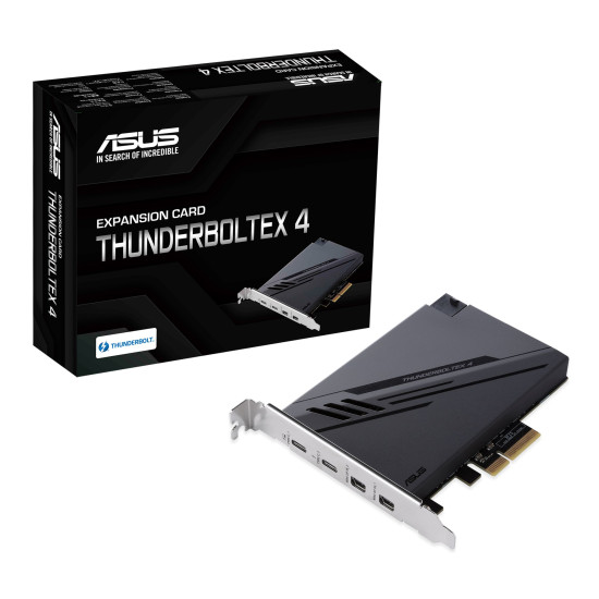 ASUS ThunderboltEX 4 is a Thunderbolt™ 4 add-on card that offers 40 Gbps bi-directional bandwidth, USB4™ device compatibility, and DisplayPort™ 1.4. It supports up to five Thunderbolt devices in a daisy chain and enables up to 100-watt USB-C® charging for laptops.