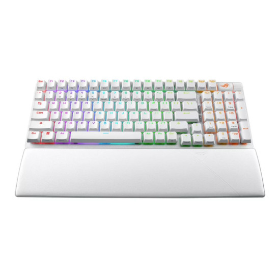 Pre-lubed keyboard stabilizers produce less friction for smoother keystrokes and stability for longer keys; durable ROG PBT doubleshot keycaps or UV-coated ABS keycaps offer a premium feel and shine resistance