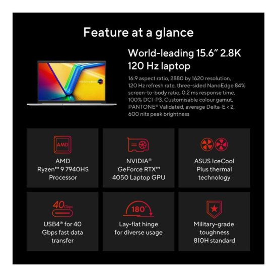 ASUS VivoBook Pro 15 AMD Ryzen 9 16GB RAM 512GB SSD NVIDIA RTX 4050 Graphics 15.6" Windows 11 Home Laptop