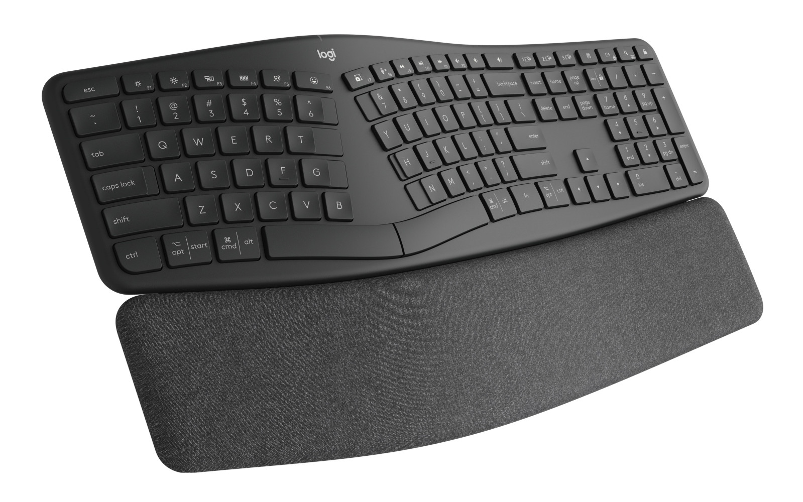 ERGO K860 for Business split, curved shape improves posture and reduces wrist and forearm muscle strain. The included wrist rest offers 54% more wrist support, reducing wrist bending by 25%. The sloping form reduces muscle strain on wrists and forearms keeping hands, neck and shoulders relaxed.