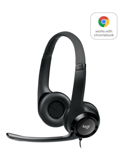 and a noise-canceling mic. Rigid left-sided mic boom is moveable and can