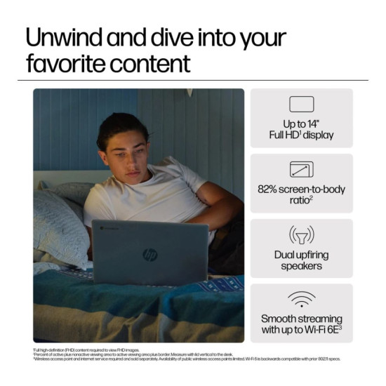 A lightweight HP Chromebook thats secure, efficient, and easy to use straight out of the box.