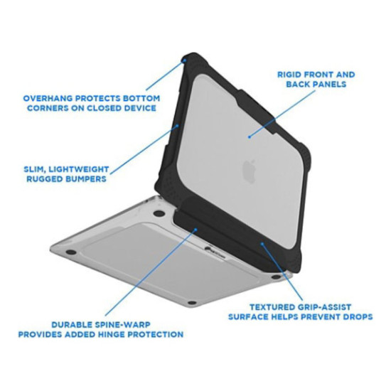 Vulnerable hinges get added protection thanks to the durable MAXGrip™ spine wrap, which also adds a textured grip area, providing users with a comfortable, non-slip surface to hold while carrying for added protection against drops.