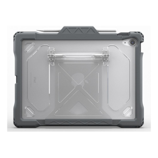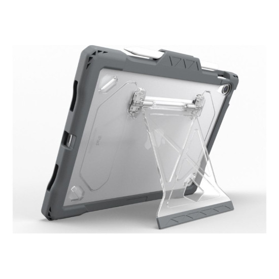 Featuring the repositionable FlexStand for unlimited viewing angles, the Shield Extreme-X2 case provides a perfect fit and outstanding protection for the iPad 10 (2022). The updated design features a completely clear back perfect for viewing asset tags and unique identifiers along with a rugged TPU exterior bumper for unrivalled shock dissipation and protection from drops and impact damage. This durable outer layer additionally resists grease, abrasion, and tears. The removable screen protector enables easy replacement and reinsertion as needed. The patent-pending FlexStand kickstand is virtually break-proof and provides unlimited, stable positioning options thanks to the easy-sliding friction hinge. The custom-fit design delivers easy access to all ports and buttons, ensuring seamless device functionality. Durable, updated corner anchors make it easy to add an (optional) hand strap, shoulder strap or any clip-on accessory.