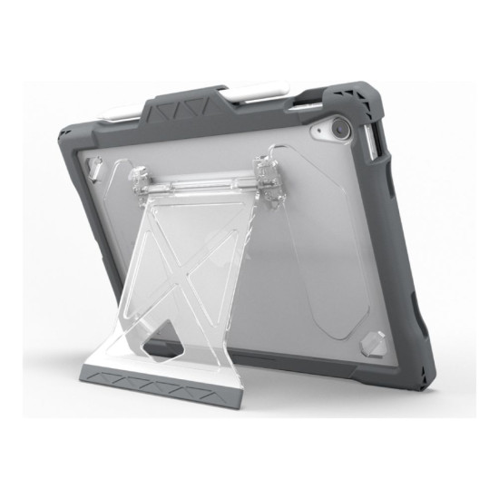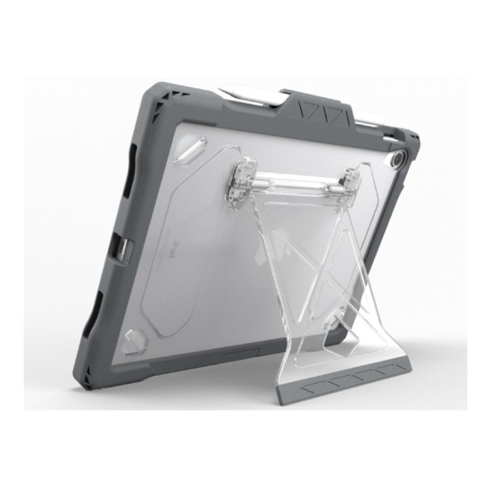 Featuring the repositionable FlexStand for unlimited viewing angles, the Shield Extreme-X2 case provides a perfect fit and outstanding protection for the iPad 10/11 (2024). The updated design features a completely clear back perfect for viewing asset tags and unique identifiers along with a rugged TPU exterior bumper for unrivalled shock dissipation and protection from drops and impact damage. This durable outer layer additionally resists grease, abrasion, and tears. The removable screen protector enables easy replacement and reinsertion as needed. The patent-pending FlexStand kickstand is virtually break-proof and provides unlimited, stable positioning options thanks to the easy-sliding friction hinge. The custom-fit design delivers easy access to all ports and buttons, ensuring seamless device functionality. Durable, updated corner anchors make it easy to add an (optional) hand strap, shoulder strap or any clip-on accessory.