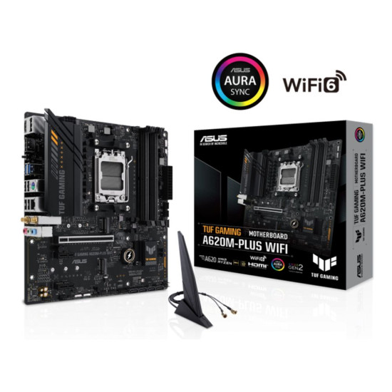 With its sleek black finish and compact micro ATX form factor, the ASUS TUF GAMING A520M-PLUS WIFI complements any build. Extensive connectivity options, including USB 3.2 Gen 1, DisplayPort, HDMI, and D-Sub, make it compatible with a wide range of setups.