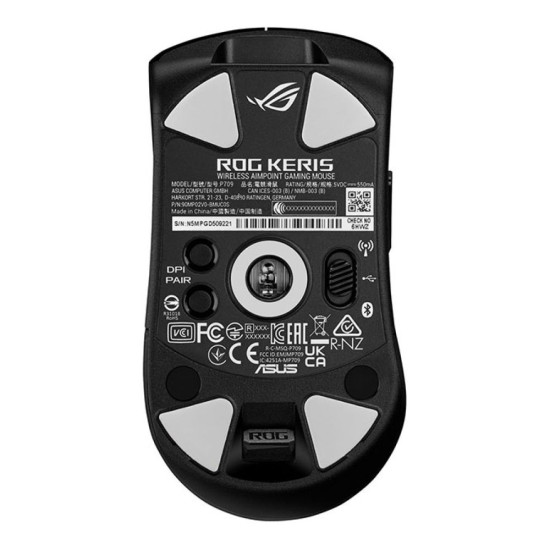 Connect the Keris Wireless AimPoint any way you want: go with the ultrafast wireless 2.4 GHz RF mode, pair up to three devices with Bluetooth® fast pairing technology, or fast-charge while dominating a game with the wired USB mode. ROG SpeedNova wireless technology optimizes wireless data transfer to deliver industry-leading low-latency performance.