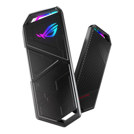 ROG Strix Arion is an SSD enclosure that fits an M.2 PCIe NVM Express SSD with a 2230/2242/2260/2280 form factor and features USB-C 3.2 Gen 2 connectivity to deliver data transfer speeds of up to 10 Gbps. Its sleek aluminum alloy case features thermal pads for excellent heat dissipation, exclusive ASUS Aura Sync lighting effects, and a protective holder with an R-hook that altogether make ROG Strix Arion a high-performance, mobile storage solution.