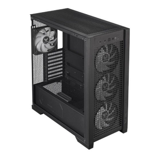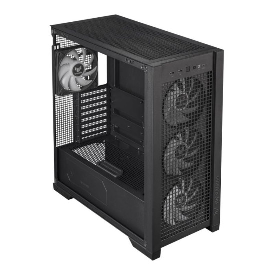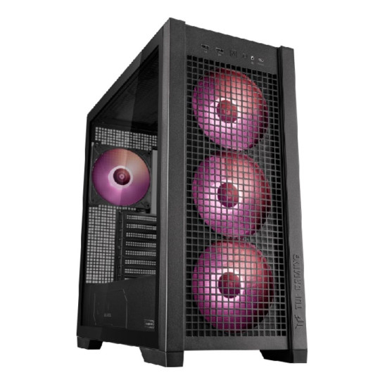 The ASUS TUF Gaming GT302 ARGB is engineered for airflow efficiency with a square mesh front panel and powerful pre-installed 140mm ARGB fans. Its modular design offers flexible configurations, hidden-connector motherboard support, and tool-free access, making it an ideal choice for high-performance builds.