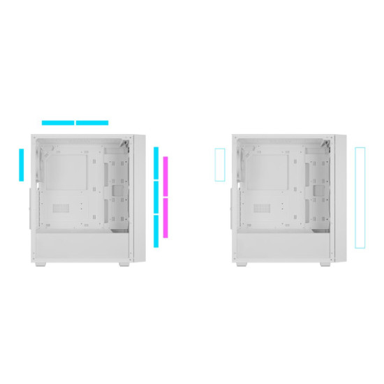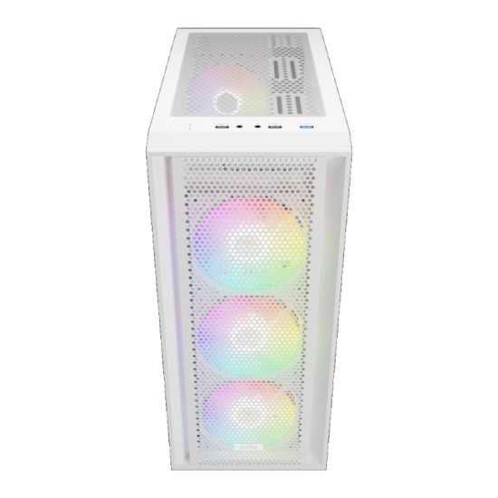 AURA GC2 ELITE WH comes with a chamfered white perforated front panel equipped with 4 fixed RGB fans to provide superior air intake.