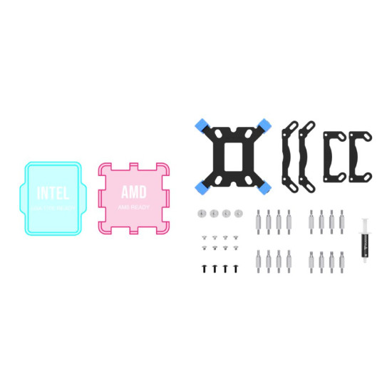 AURA GL240 V2 Series allows easy installation on both AMD and Intel platforms (LGA 1700 and AM5 Ready) with the attached universal mounting kits.