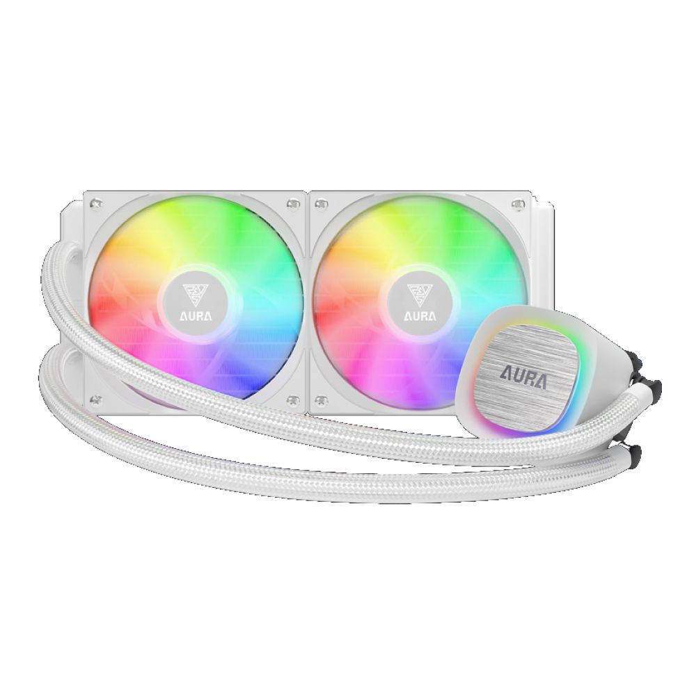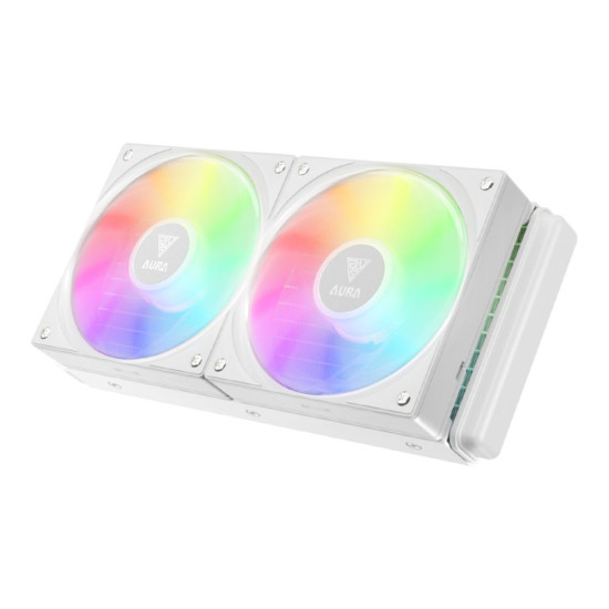 PERFORMANCE ARGB LIQUID COOLERAURA GL240 V2 Series is available in black and white editions. With its 12-slot 10-pole motor, upgraded copper base, and optimal fluid routing system, the cooler boasts top-tier in-class performance. The cooler also features hidden cable routing, a fully rotatable pump housing with brushed plating, a pump head with indirect lighting, and 30 built-in lighting effects.
