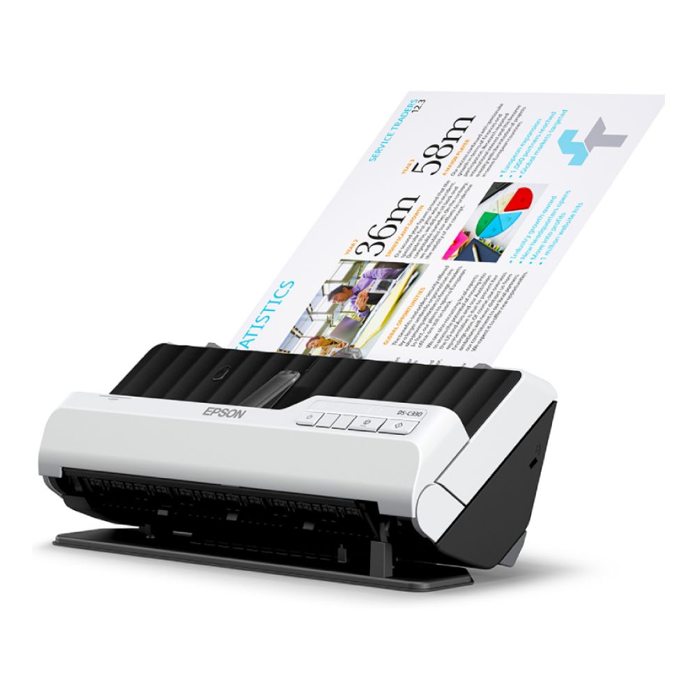 The Epson WorkForce DS-C330 redefines convenience with its high-speed scanning, versatile media handling, and compact design. Whether youre working in a busy office, a small workspace, or from home, its automatic double-sided scanning and advanced enhancement features make handling documents a breeze. With eco-conscious construction and seamless compatibility with Microsoft applications, this scanner offers unmatched productivity with minimal environmental impact.