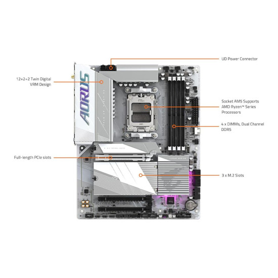 - AMD Socket AM5:Supports AMD Ryzen 7000 / Ryzen 8000 Series Processors