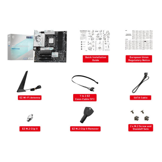 Simplify installation with EZ PCIe Clip II, pre-installed I/O shields, and intuitive cable management.