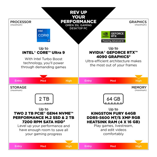 A great balance of price and power, the OMEN 35L is ready for today and built for easy future upgrades.