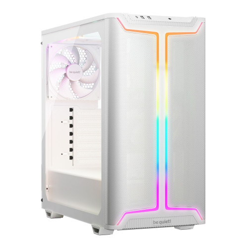 Pure Base 501 DX White features ARGB LEDs on the cases front and inside the case. That makes the PC case hit the sweet spot between ARGB illumination and elegant understatement the Pure Base 501 case series is known for. The front has been designed from scratch to match the illumination and make a statement in your room.