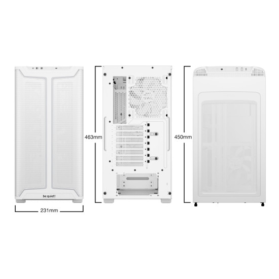 The high-quality, fully-windowed side panel offers a perfect view of the components inside your Pure Base 501 DX White. The window is made of tinted and tempered glass with white painted side bars.