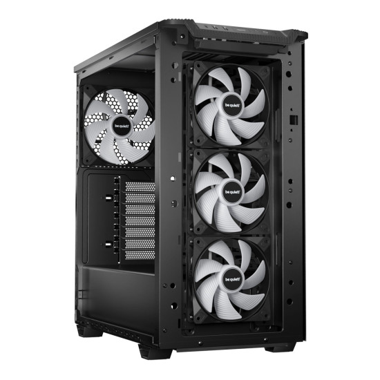 With optimization for maximum airflow, Light Wings LX 120mm PWM is the right choice for any case configuration that demands high cooling performance. Its 7 airflow-optimized fan blades not only reduce noise-generating turbulences but also ensure Light Wings LX PWM provides the performance that is needed, even in demanding configurations. 3 Light Wings LX 120mm PWM pull cool air from the front, while a large 140mm fan exhausts the warm air through the rear.